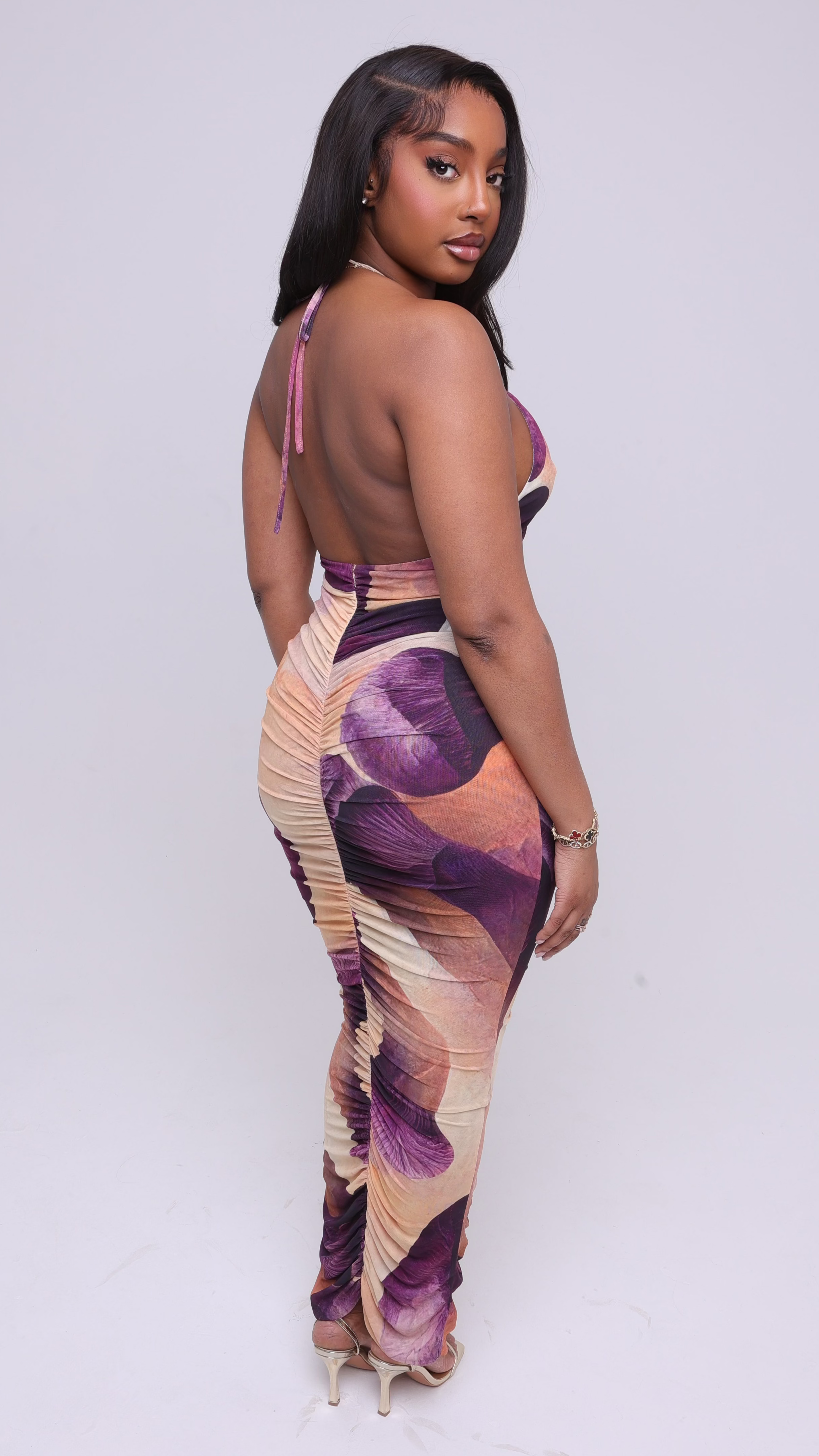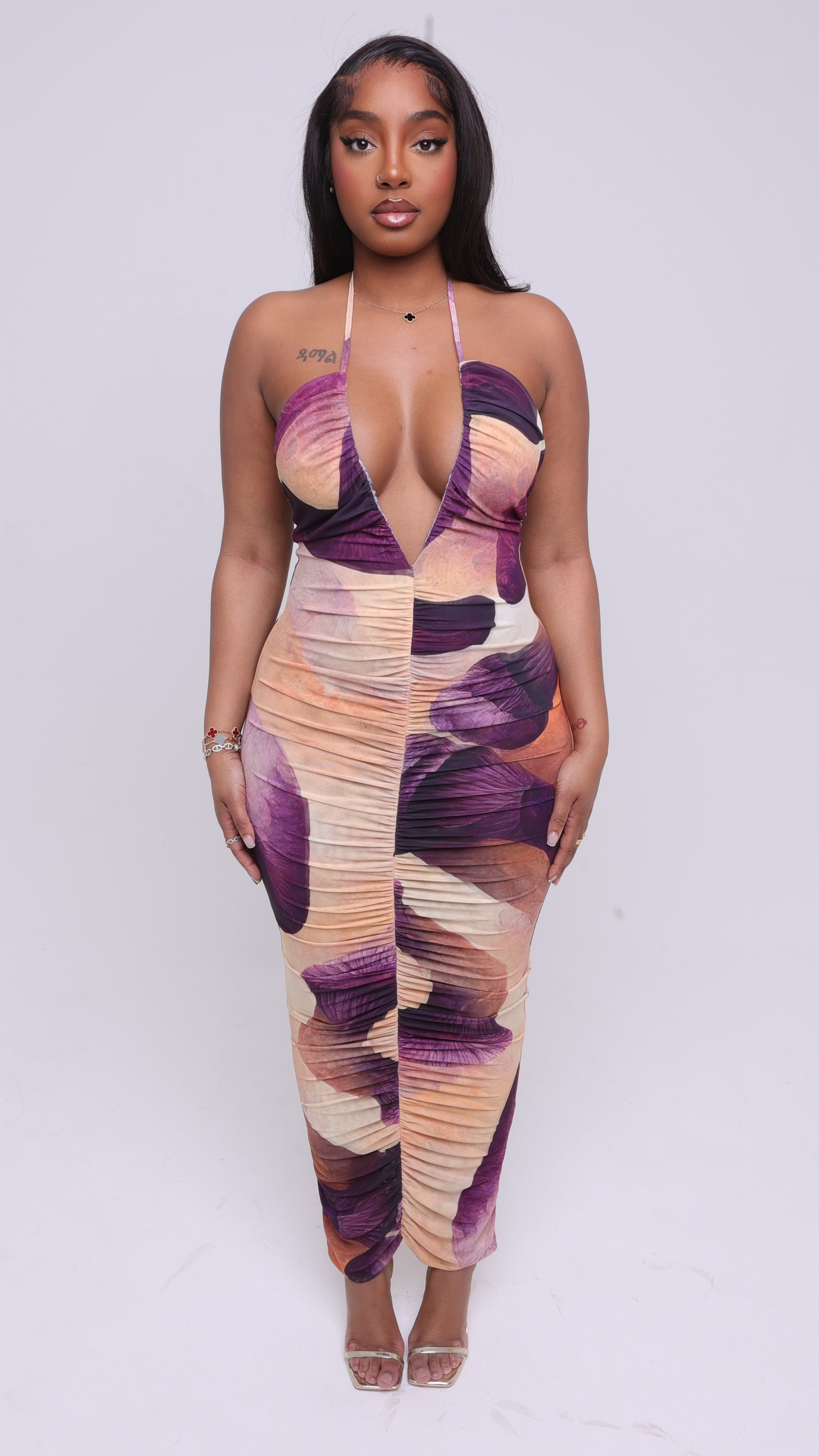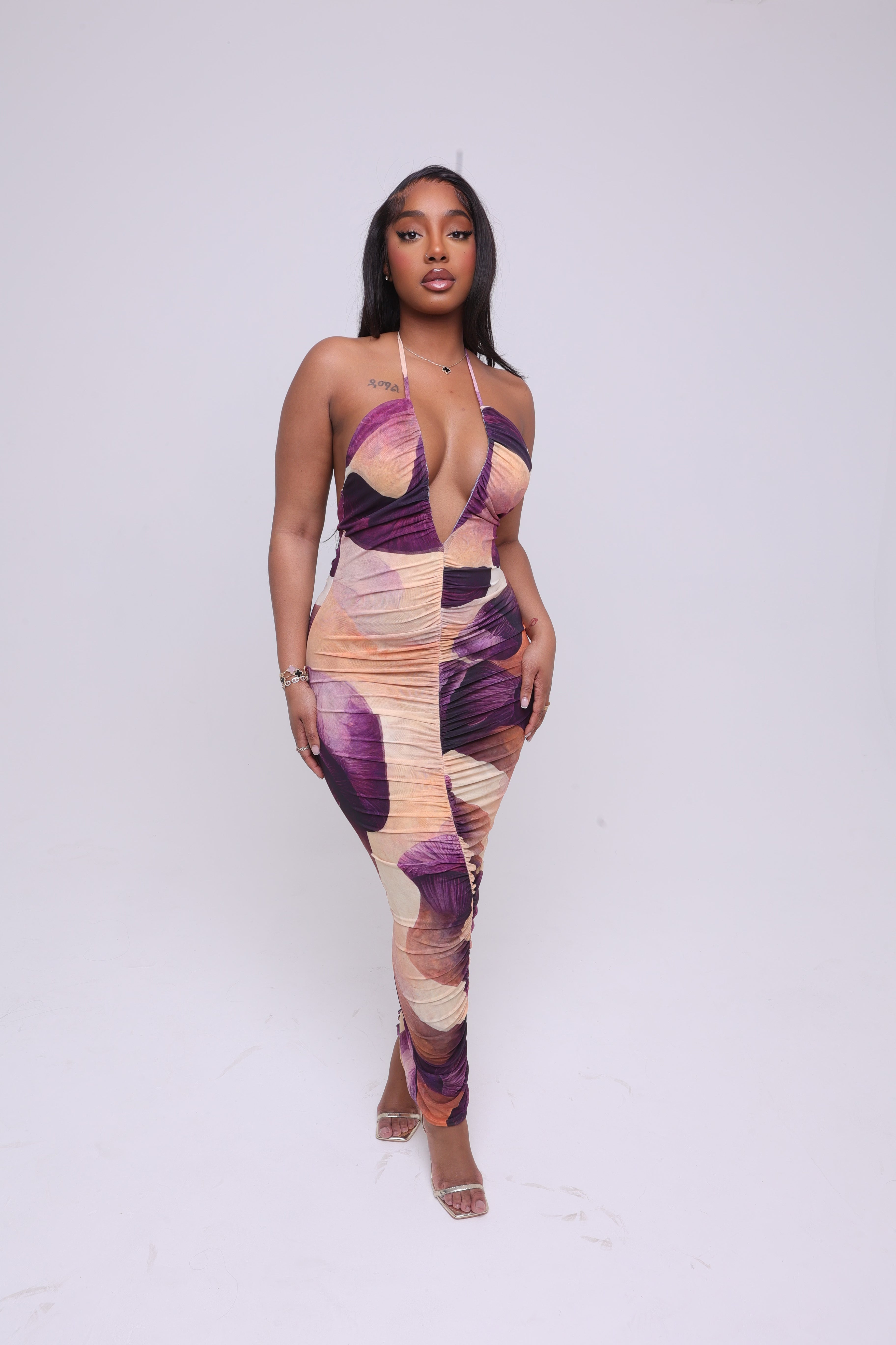 Amai es un vestido que no necesita esfuerzo, simplemente lo tiene. Su profundo escote atrae todas las miradas, mientras que el suave drapeado estiliza la figura sin apretar. Su lazo ajustable permite ceñir la cintura a tu gusto, para un look favorecedor y cómodo. La espalda descubierta le da un toque sutil que transforma una noche sencilla en una velada inolvidable.