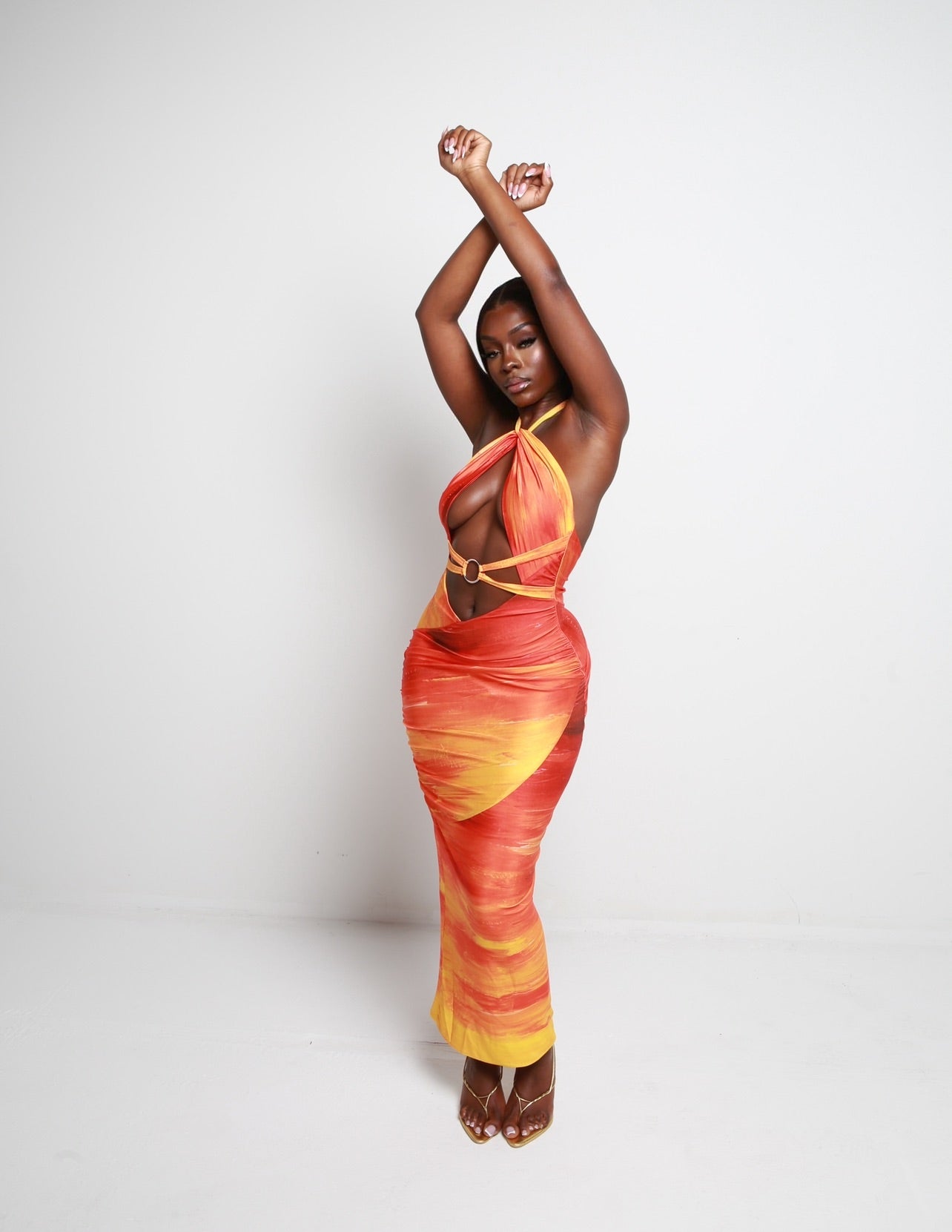 Un imprescindible para estas fiestas, el vestido Azalea regresa con un estilo impecable. Este superventas combina elegancia con un toque moderno: un vestido maxi ajustado con pliegues, un escote elegante y un detalle de aro dorado en la cintura que no pasa desapercibido.