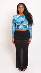 Fleur Long Sleeve Mesh Top - Blue Swirls
