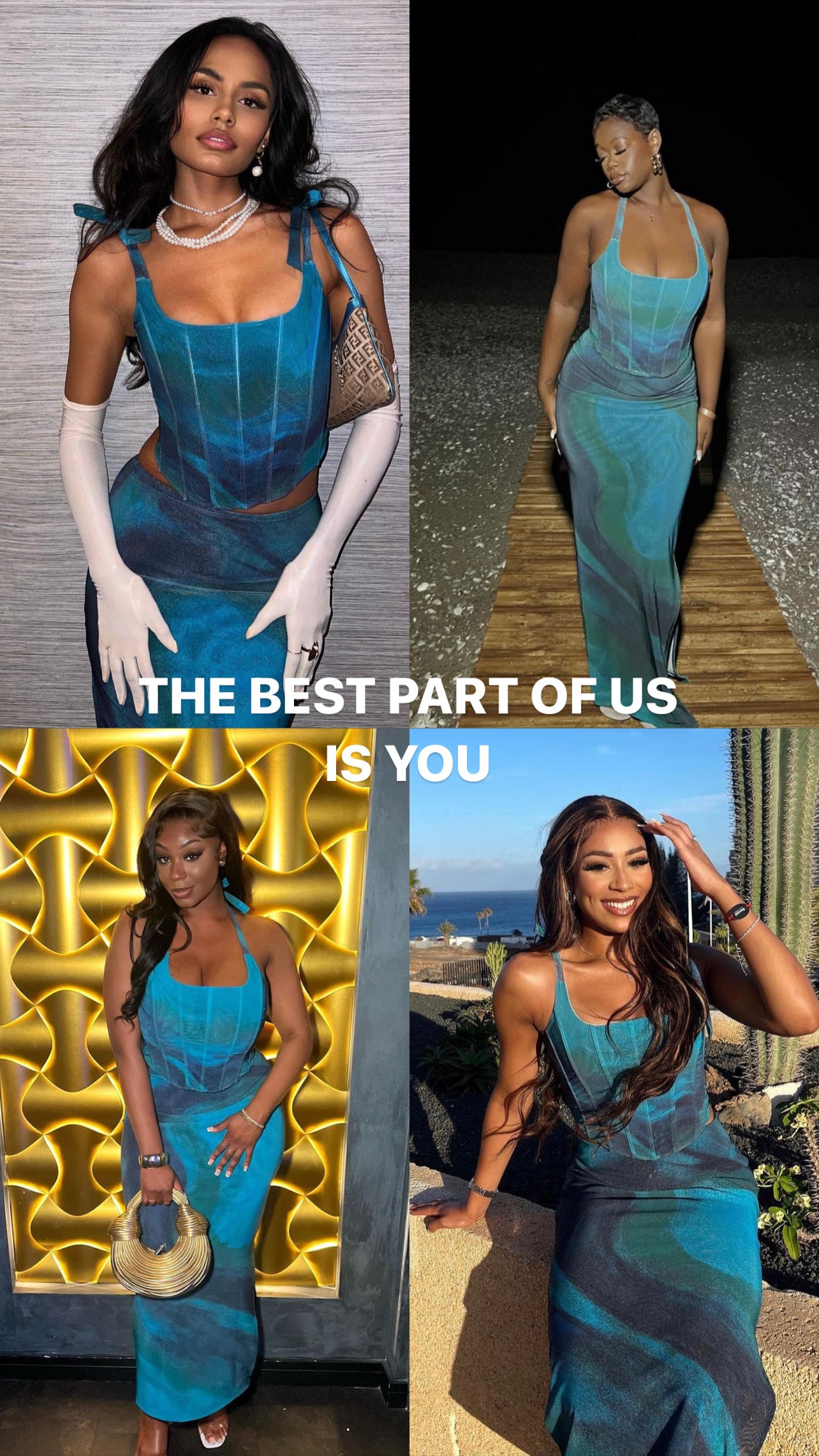 Paired with a sleek matching maxi skirt, this set is the epitome of chic versatility, making it your go-to for the season and beyond. Adjustable straps ensure a custom fit, so you can move effortlessly while turning heads. With Nola, the night is yours to own.